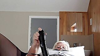 Gilf gags on a biggest jock then gets vagina licked previous to riding biggest dong