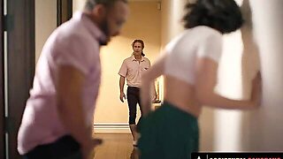 Stepmom accident caught step son-in-law tearing up her stepdaughter at kitchen but nonstop let them cum