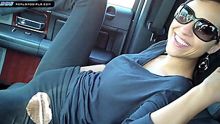 Italian MILF Artemisia Love enjoys flaunting her massive hard nipples while driving